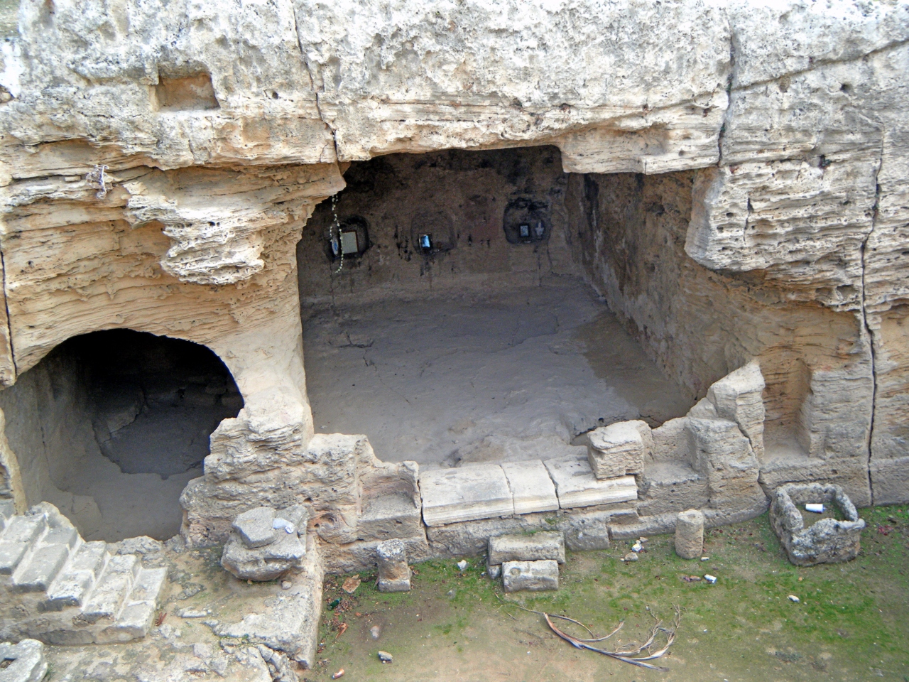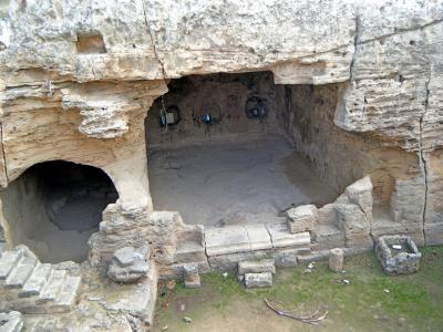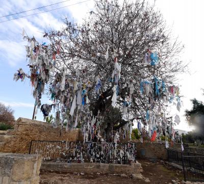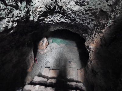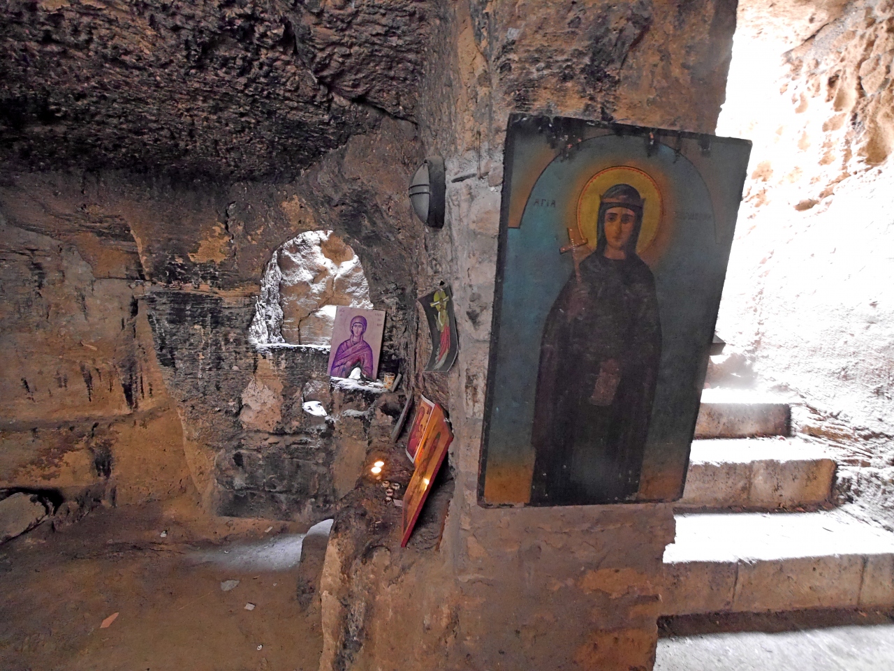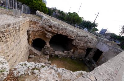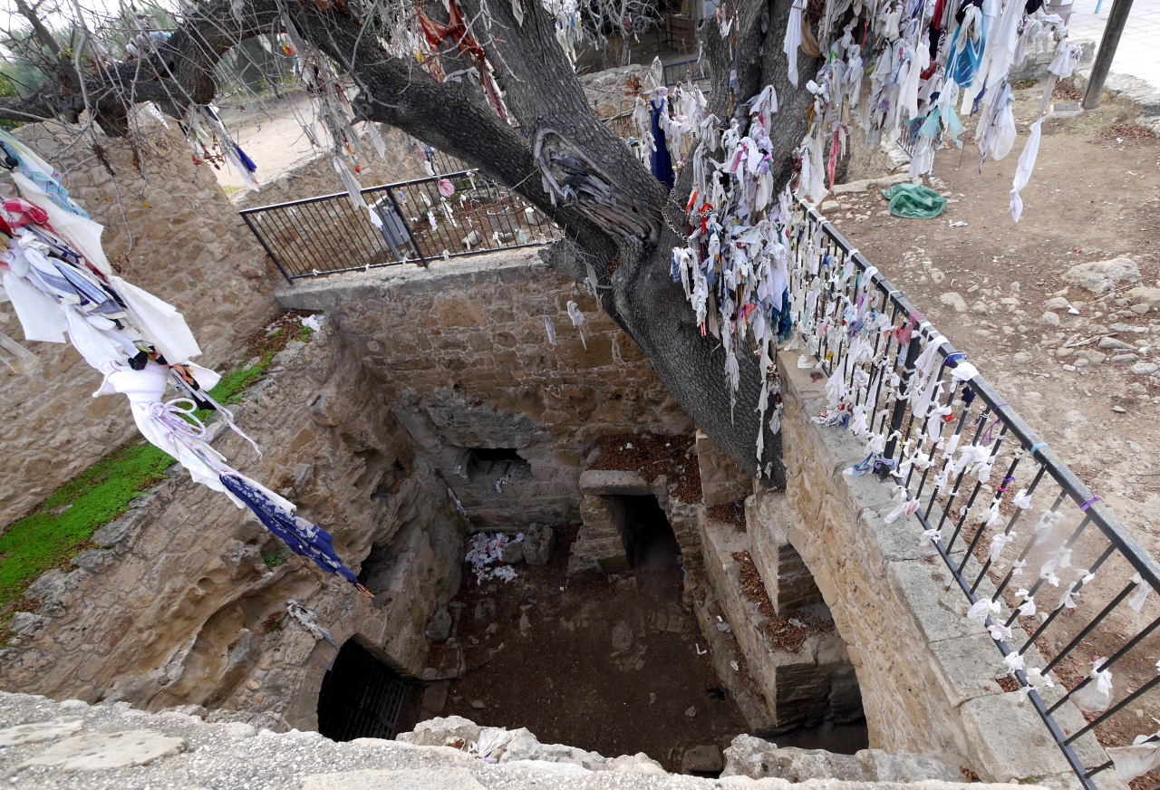 キリスト教が弾圧された時代に礼拝・埋葬に使用した小さな穴倉だ.木にさな布切れが無数に結び付けられている.このカタゴンペの水にが目に良いとされて,水につけた布を木に結び付け眼病が治る祈願をしたと.この水とてもきれいで階段の下にある.気が付かないで階段を下りてしまい靴を濡らしてしまった.かつてのキリスト教徒の隠れた暮らし(トルコの地下都市などが壮大だが)がわかるところ.聖パウロとともにローマ時代を思う.駐車場は向かいにある.