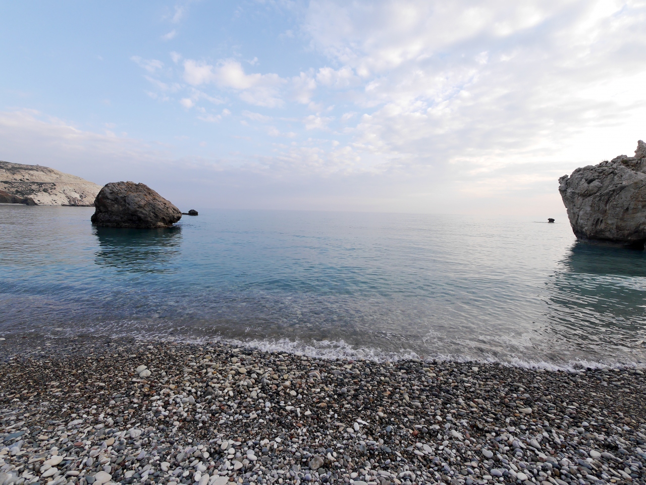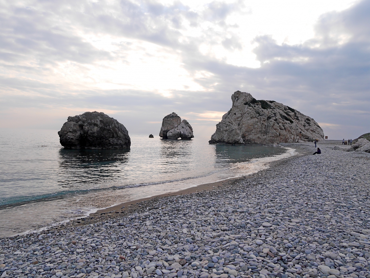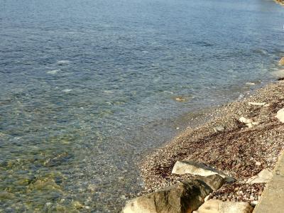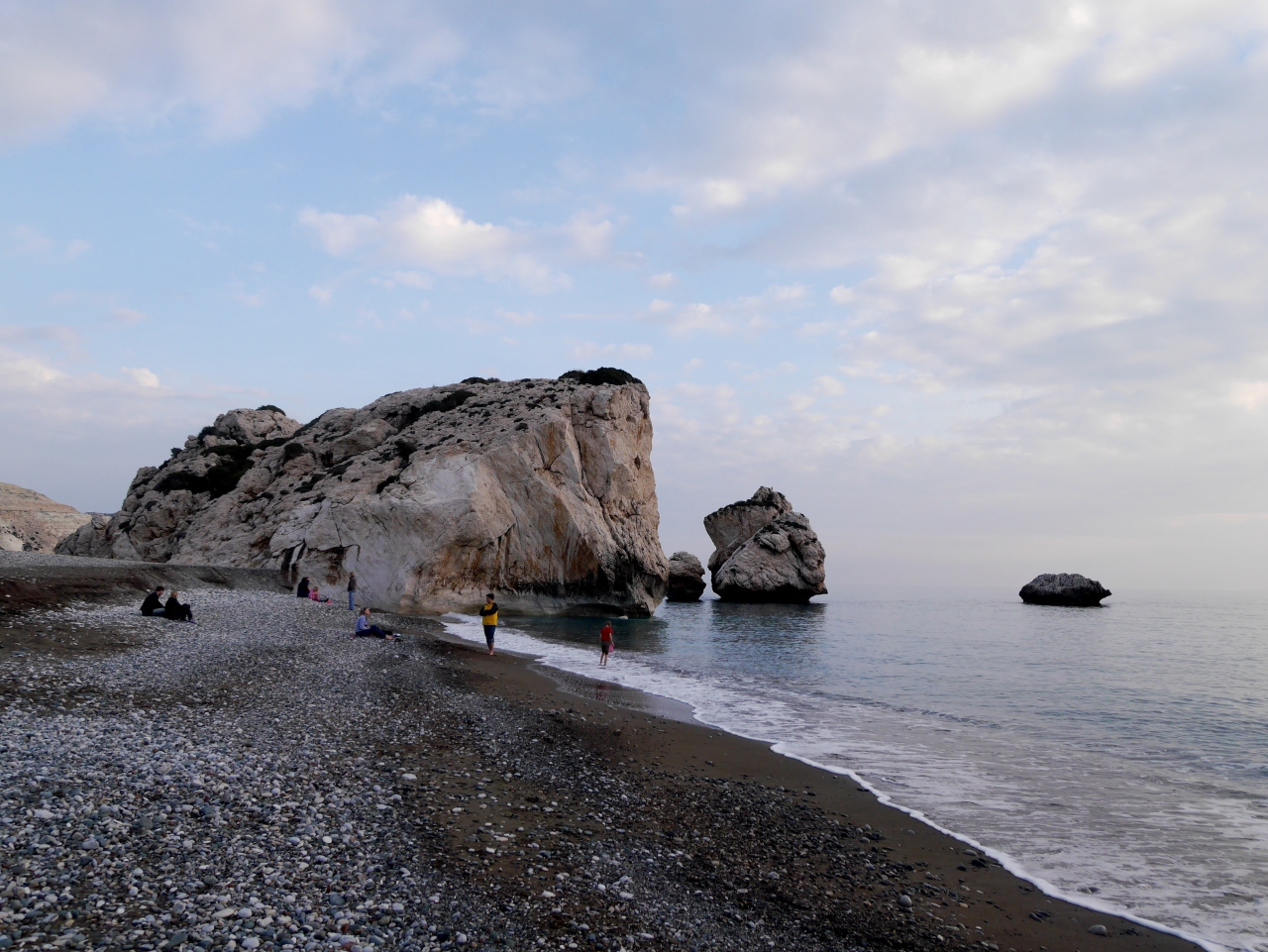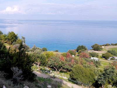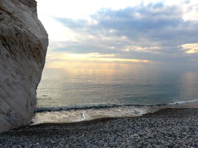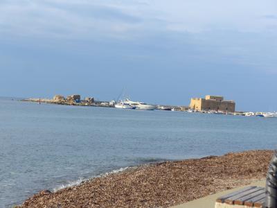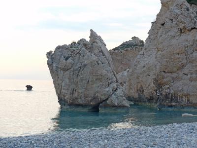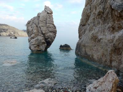 確かにボッティチェリのビーナスの誕生の絵のモデルにふさわしい海岸だ!Aphrodite生誕地で元旦夕方の冬の海でも青く透明ですばらしい.夏の晴れた日ならもっとすごいだろうと思う.この青さがどこから来ているのか.岩の成分によるのかよくわからない.しかしぜひ行ったほうがよい.アフロディテの泉は大したことなかったがここは素晴らしい!駐車場から地下道で行くことができる.