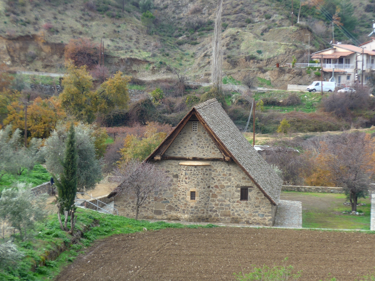 世界遺産,私たちは1月2日のため閉館だったところを偶然オランダからのツアー客と一緒になり中を見ることができた.素晴らしい壁画!Agios Nicolaos Tis Stegis教会は11世紀ビザンチンにて創建された教会 雨漏りから壁画を守るためにドームの上に屋根をつけてこのような形に12世紀以降なったという.それでTis Stegis(屋根の)聖ニコラウスになったという.壁画が素晴らしく残っている.写真撮影ができないのが残念.もう一つはPanagia Tis Podithou教会 偶然さっきの団体客がここにいてここも入れる!ラッキー!16世紀初頭に修道院付属教会として建造。ルネサンス様式とビザンチン様式が融合した独特な作風のフレスコ画が残っていることで知られる.ここはヴェネチア占領時代に作られたので,両方の融合が見られるとのこと.脇の小さな大天使ミカエル礼拝堂も素晴らしい壁画だった.必見と思う!私たちはそれ以外の教会には行けなかった.もう一度ここには来たい.