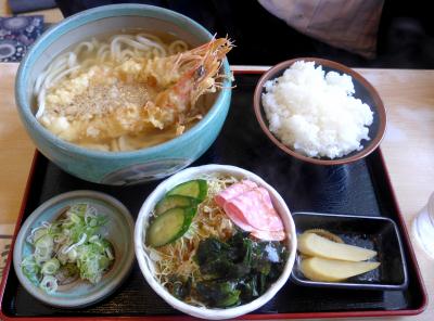 地元の店だが割とおいしいうどん 定食はご飯たっぷりで食べきれない