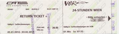 ウィーン市内の観光には24時間フリーパスが便利.空港でCATこみで26ユーロ
