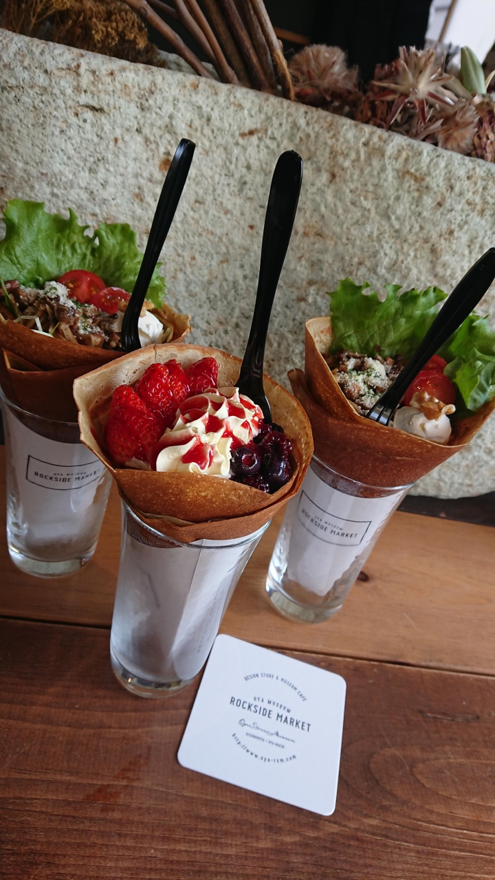 栃木県の大谷石資料館のすぐそばにあるオシャレな雰囲気のカフェ。店内は、雑貨を扱うスペースとカフェのスペースとがあり、広さはさほどないが、そんなに混んでおらずわりと落ち着いた雰囲気。この日は、早めの昼食をここでとり、資料館坑内を見学、移動して餃子を食べるというプランだったのだが、こちらのガレットは、そういう感じで食べるのがほど良いかなといった印象のボリューム。この日は、きのこのガレットと大谷夏イチゴと増すカルポーネクリームのガレットを頼んだのだが、どちらも見た目が可愛らしく、写真映えもばっちり。オシャレな雰囲気がとても好印象だった。