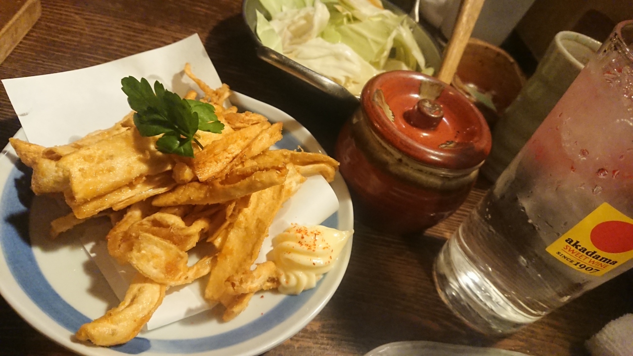 るるぶ栃木に掲載されていて興味を持ったこちらのお店は、宇都宮駅からすぐのところにある焼き鳥屋ならぬ、焼「とん(豚)」屋さん。様々な部位を串で堪能できるのが魅力的。店内は隠れ家的な雰囲気があって、常連になりたくなるようなどこか落ち着く感じがした。また、焼とんだけではなく、寒ぴょうの唐揚げや、宇都宮揚げといった栃木名物メニューも存在するので、観光客も楽しめる。ハニージンジャーソーダを注文したら、本当にショウガが入っていたりと飲み物も他店とは違った楽しみがあったので、また行きたいと思うようなお店だった。この日は、餃子をお昼過ぎに食べたこともあり、さほどお腹が空いていない状態で来店したのだが、二人で6000円は超えたので、金額的にはそんなに安くない印象だが、満足感が得られたので良しかと。お通しのキャベツはお代わり自由とのことだった。