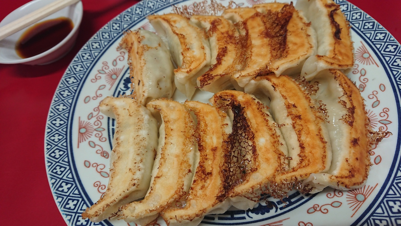 早めの昼食を別のお店で取ったあとに来店。栃木出身の友人に美味しいと紹介してもらったお店で、焼き餃子と水餃子、持ち帰り用の餃子のみを扱った専門店。(ライスや他のメニューは一切なし)二人で来店して焼きを4人前、水餃子を1人前注文。店内に入って券売機で食券を購入するシステム。さすがの人気店で、15時頃でもお店の外に20人ほどが常時並んでいる感じだった。駐車スペースが狭いのが難点で、ただでさえ狭い駐車場に入店待ちの客の列があるので、かなり停めづらかった(日曜だったが警備員はなし)。ようやくお店に入ると席は厨房を囲むようにカウンター式になっていた。お店の中でも何人か待っている状況だった。店員さんは3,4名ほど。活気あふれる感じではなく、淡々とローテンションで作業している感じ。明るい接客ではないが、ちゃんと客の動きは確認しているようで非常にさばけてはいた。