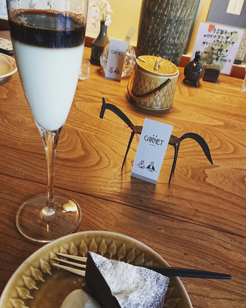 友人といっしょに喫茶タイムに利用。少し狭めの路地にひっそりとたたずむお店。お店の近くには、駐車場スペースが5台ほどあるので、車での来店もできるが、踏切近くの狭い駐車場なので、やや停めづらさがあるのは否めなかった。店内を覗くと狭いながらもお客さんでにぎわっており、店員さんがにこっと出迎えてくれた。この日は、ケーキとアイスのカフェオレを注文。1つひとつ、1杯1杯、丁寧に用意してくれるのが伝わってきた。のんびり待っていると商品が到着。ガトーショコラはみっちりとしていて、食べ終わるのがもったいないくらい美味しかった。また、カフェオレもおしゃれなグラスに二層に分かれた状態で運ばれてきたので、それだけでいつもよりリッチな気分に。香りも凄く良く、味もとても美味しかった。常連さんも多いようだったが、その気持ちが良く分かるような素敵なお店だった。のどかな気分を味わえるほっこりとしたお店だと感じた。