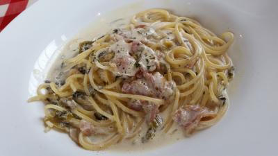ランチはA-Cランチを選択することができ、税抜きで880~980円程度。今回は、好きなドリンクを選べるAランチを選択。サラダ、スープ、ミニピザ、パスタ、ドリンクで880円なのでかなりお得な気分。店員さんの態度もよく、タイミングよく料理も出てきたので、パスタが出てくるまでに待ちくたびれるということも一切なかった。客層は9割以上が女性。男性は入りづらいかも…。パスタも10種類くらいから選ぶことでできるので、また次回に違うパスタを食べてみたいと思った。とても好印象なお店。