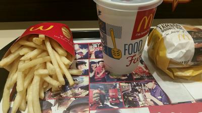羽田空港の第旅客ターミナルのB1Fに位置するマクドナルド。営業時間は6:15−22:45。カウンターのような席にはコンセントもあり。マクドナルドのアプリクーポンを利用し、チーズタマゴダブルマックのセット(ポテト+ドリンク付き)を、650円で堪能。時間をつぶすときなどに最適。
