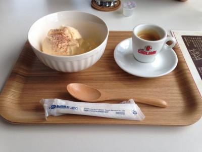 秋月で一休みしようということで来店。このお店は、イタリアのモデナで親しまれる珈琲豆ブランドの「カリアーリ」の直営店である。接客があまり得意ではなさそうなオーナーさんが案内してくれ席についた。(接客は得意ではなさそうだが、真摯な対応。)店内は、白を基調としており、テーブルとテーブルの間隔がわりと広く、広々とした印象を受けた。秋月名物の「葛(くず)」をアレンジした「葛アフォガード(734円)」を注文。バニラアイスと葛きりに、エスプレッソをかけて食べてみると、アイスと葛の甘さにエスプレッソの渋みがからまって、なんとも絶妙な甘さに…。思わず感激してしまう味で、是非また食べに来たいと思うほどだった。駐車場は10台ほどある。