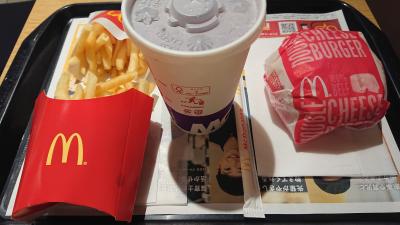 お昼は別のお店で食べたのだが、この日はお腹がとても空いていて「久しぶりにマックのポテトが食べたい」と思ったので店舗検索をしてこちらの店舗に立ち寄った。カレッタ汐留は若干分かりづらい建物の形状をしていて、ややお店にたどり着くのに時間を要した。店内に入ると印象的なのは、2人掛け、4人掛けといったテーブル席が少なく、大きな長テーブルが2つ並んでいた点。客層は、場所柄なのか子連れが多かった。店内は広くはないものの、客が帰るとすぐにクルーさんがテーブルを拭きにきて、次のお客さんが使いやすいようにしていたので、そこは好印象だった。
