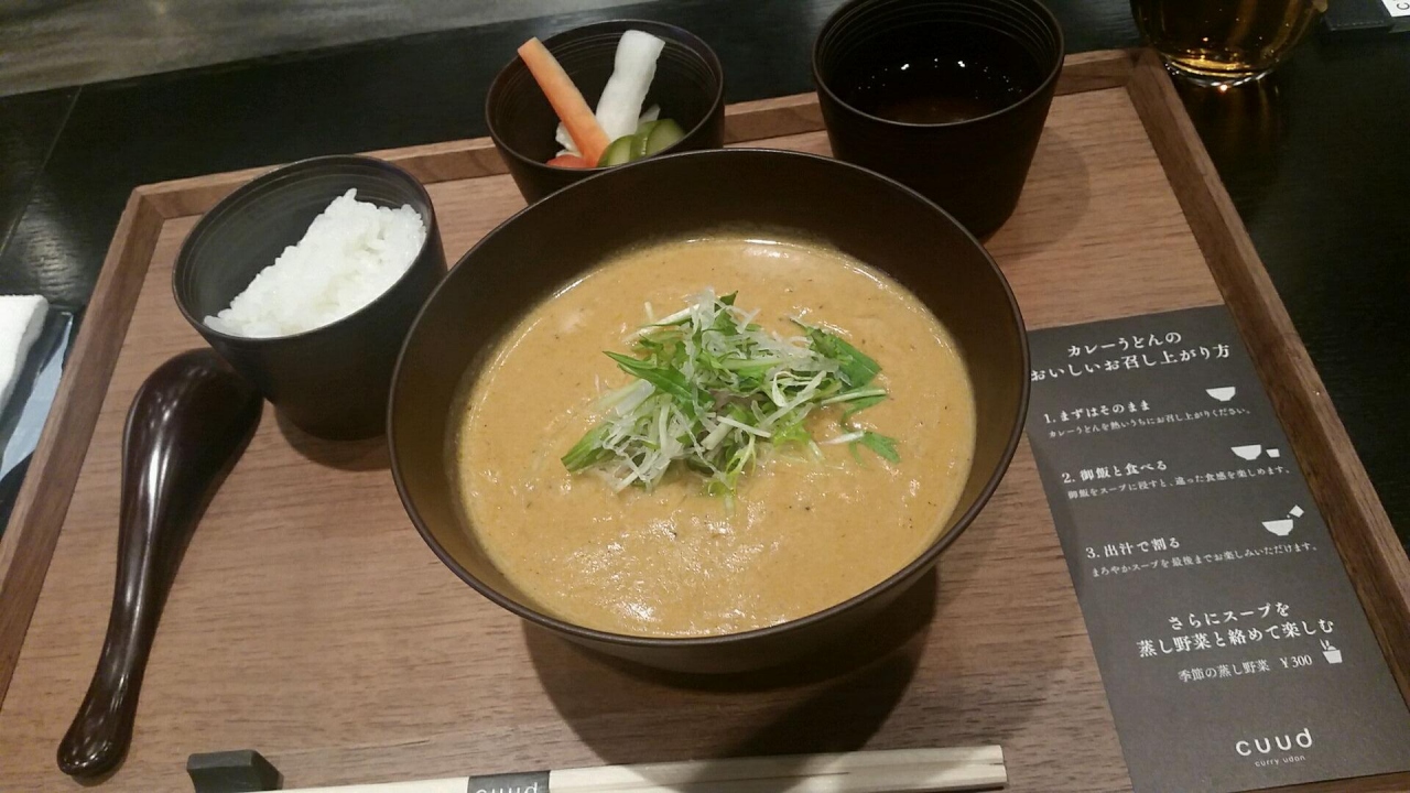 飛行機の出発前に、少し早めのお昼として利用。偶然立ち寄ったカレーうどん屋さんだったが、中に入るとこじゃれていて、厨房を囲むようにカウンター席が設置されている。店員さんは女性のみで、客層も女性が6割を占めていた。メニューは、カレーうどん、とまとカレーうどん、ハーフ&ハーフ。値段はうどんとしては高めの1300円程度。今回は初めてだったのでカレーうどんを注文。わりと辛みのある味で、汗が出るほどだった。ごはんやお漬物もついている。そして、最後にだしを入れると最後までスープが堪能できるメニューだった。今回は限られた時間の中での食事だったので慌てて食べたが、今度はゆっくり味わってみたい。