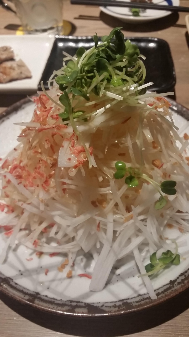 亀有駅からすぐのところにある居酒屋。お通しは枝豆(お替り自由)+デザートorスープで300円程度。どのメニューもわりとリーズナブルで、サラダは量が多くボリューミーだった。焼き鳥に力を入れている模様。料理が出てくるスピードは早く、料理の味も美味しかった。ただ気になったのは、お客さんが退店したあとにバッシングをしていないテーブルが沢山あった点。そこまでバタついているようには見えなかったのにも関わらず、テーブルの上がほったらかしなのは気になった。接客は悪くないだけにそこが残念。全体的には利用しやすい雰囲気だったので、また利用したいとは思う。