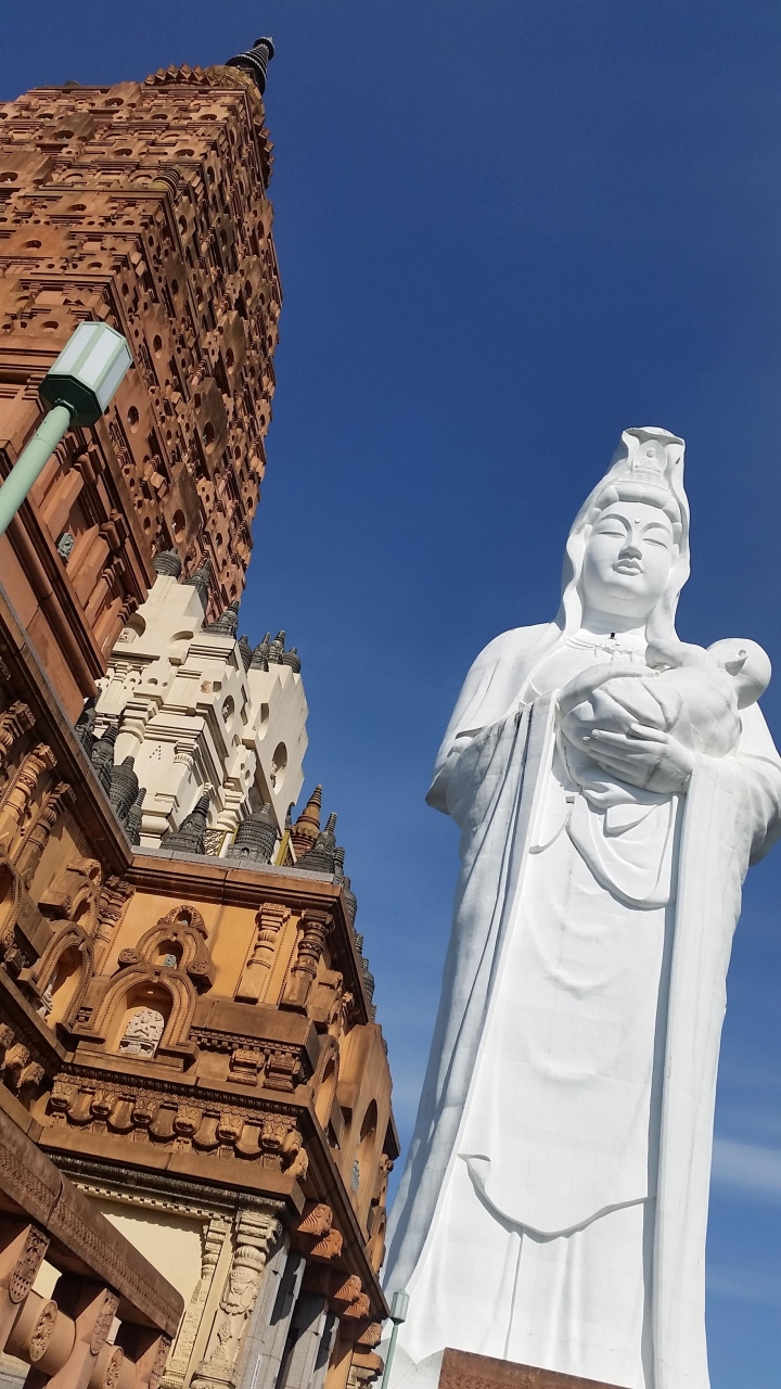 友人の誘いがきっかけで、普段は遠くから眺めるだけの成田山観音像を見に行く事に。トライアルというスーパーの近くにある。千葉県成田山の分院らしく、昭和33年に久留米分院が開山されたらしい。500円を払えば聖母像の近くに行くことができ、裏側にある入り口から階段で聖母観音像の中を登ることもできた。観音像の手前にはインド仏舎利もあり、まるで異国に来たかのような気分を味わう事ができた。観音像の中を登ると、時折小さな窓がありそこから外の景色を覗く事も出来る。一番上まで登っても展望台があるわけではないので、達成感はやや低いものの、上に登るまでに息が上がるので、観音像の高さを実感する事が出来た。観音像の出口付近には、地獄館というエリアがあり、地獄の様子が再現された空間があるのだが、なかなかリアルで子供は泣いてしまうかなといった印象。