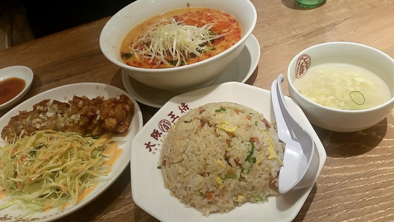 以前から気になっていた大阪王将へ。ゆめタウンの1階、フードコート横に店舗がある。事前にクーポン情報を調べたところ、「GYOZA STATION」というサイトから焼き餃子1人前無料券を取得できることを発見。今回は、その餃子と担々麺、チャーハン、ユーリンチー(鶏のから揚げネギソース炒め)を注文。店員さんは全体的に少し暗めの人が多かったものの、お店の雰囲気はわりとよかった。回転率も良いようで平日のわりに客数も多かった。レジの際にクーポンを見せたら「対応していません」と一度は言われたものの、クーポン通りに焼き餃子1人前を無料にしてくれたのでありがたかった。次回は、天津飯など別のメニューも試してみたい。