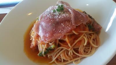 友人の誘いで筑後市にあるイタリアンダイニングアンプさんでランチ。外観を見るとそんなに大きい建物ではなく、不動産屋さんと隣なので変な感じ。中も薄暗い隠れ家的な感じなのかなーと思いつつ中に入ると、中は開放的ですごく明るかった。予約をしていたので2人ではあったがソファー席に座ることができた。(4人は座る事の出来る席だったし区切りもあってとても居心地が良かった。)店員さんも愛想が良くて好印象。この日はパスタランチを注文。850円ほどでサラダ、スープ、パスタ、ドリンクがついてくるのでコスパ良し。パスタは3種類から選ぶことができた。+200円でパスタを大盛りにする事もできたので大盛りで注文した。他にもピザランチもあるみたいだった。客層は、ほぼ女性。もしくは、子連れのママ友ランチといった印象だった。ゆっくりできるのでおすすめなお店。