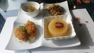 佐賀市内にお出かけということでランチを食べるお店を探していたところ、佐賀県庁の上階にレストランがあることが判明。しかも、口コミなどを調べてみるとなかなかの評判。ということで実際に足を運ぶことに。11時半オープンということだったが12時頃に到着。県庁の上階は展望ホールになっているが平日だったからかガランとしており、本当にこんなところにレストランがあるのか?と一瞬思ったが、レストランに行ってみるとなんと満席。男女問わず人気があるお店のようで、予約をしている人が多いようだった。メニューはリーズナブルで、4種プレートはお味噌汁・ご飯・コーヒー・デザートがついて税抜き1000円。他にも刺身定食1500円やハンバーグのメニューなどもあった。今回は4種プレートのランチと、どうしても気になったのでシシリアンライスも注文することに。サラダの下に佐賀牛と温玉が隠れており、よく混ぜて食べてくださいとのことだった。佐賀市内を眺めながらゆったりと食事ができ、穴場だと感じた。また行きたいお店。料理も美味しい。