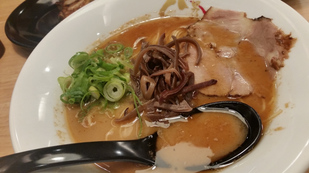 福岡ウォーカーにクーポンが掲載されていたのがきっかけで、友人と夜に初来店。自分は、焦がしネギ黒ラーメンと白ご飯を、友人は汁なし麺と明太ごはんを、それに加えて二人で餃子(8個入り)を注文。店内はカウンターの他に何席かテーブル席もある。木製のテーブル席で清潔感もあるからか女性客が半分くらいを占めていた。店員さんの対応も良く、サービスは満足。しかし、肝心の味がいまいちだったのが残念。ラーメンよりも餃子が美味しかった。