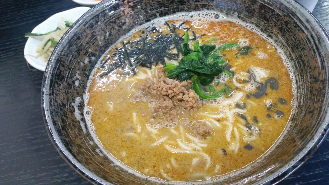 坦々麺が食べたいという事で友人と車で来店。店前に駐車場スペースが2−3台分ある。店構えは少し古い感じだが、店内はそうでもなく店主が出迎えてくれた。入店時には客は自分たちだけだったが、12時を回ると3組ほどお客さんが入店。いつもかどうかはわからないが、この日は店主が1人で接客も料理も担当していた。店のイチオシである「たんたまセット」を注文。担々麺+たまかけごはんのセットである。担々麺は2種類あり、和風か白ごまから選択する事が出来る。また、辛さは4段階で選ぶ事ができ、控えめ、普通、ちょい辛、辛いがあるそうだ。たまかけご飯は、だし醤油を白ごはんにかけたあと、その上に卵をつぶさずに落とし、軽く混ぜてまずは食べる。その後、担々麺の残ったスープにご飯を投入し、リゾットのようにして食べる事もできる。たんたまセットは800円。値段のわりに何段階かで楽しめるし、とても満足なセットだった。また訪れたいと感じるお店だった。