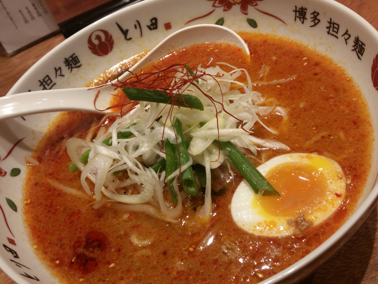 福岡ウォーカーで紹介されていて以前より気になっていた『博多担々麺とり田』でランチ。お店は11時にオープン。食券をまずは購入。その近くに店員さんがスタンバイしてくれており、食券を渡すと担々麺の辛さをどうするかを聞かれた。今回は初めてだったので「ふつう」を選択。「ふつう」でもわりと辛めだったので、辛さに強くない人は「ふつう」を選択するのが無難と思われる。今回は、お店人気ナンバーワンのとり田セット(1300円)を注文。担々麺+唐揚げ2個+白ご飯がつく。量がわりと多いので、女性の方はガッツリ食べられる人以外はミニとり田セットの方が良いかも。唐揚げには柚子胡椒が添えられていた。担々麺のスープがとても美味しくて、大きめのれんげですくってほとんど飲み干したくらいだった。テーブルに置いてあるお茶が八女産の「水出し玄米茶」だったのだが、これがまた口の中がさっぱりして美味しかったので軽く5杯以上は飲んでしまった。また次回も行きたいと思うお店だった。