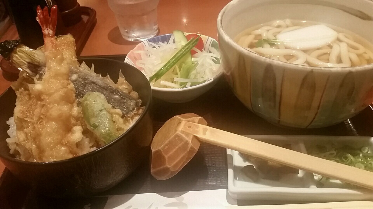 飛行機に搭乗するまでに時間があったので、夕ご飯を食べるべくこちらのお店へ。うどんや蕎麦、どんぶりを取り扱っているお店。この日は、うどんと天丼がセットになった天丼セット(1340円)を注文。うどんの代わりに蕎麦を選択することもでき、麺は温かいものか冷たいものかを選択することができる。お店が狭い関係上、隣の席との間隔は狭い。料理のおいしさは普通。料理が出てくるのはわりと早かった。もう少し値段が安いと良いなと思った。