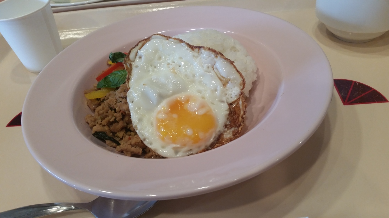 幕張メッセでのイベント参加時にランチを利用。幕張メッセ中央モール6ホール前にあるお店で、ハンバーグやステーキなどのメニューがある洋風レストラン。イベント時は混雑している事が多いが席数が多いのが魅力でたまに利用している。この日はガパオライス(1000円)を注文。少しピリッとした後味で美味しかったが、量がもう少し欲しかった。水はセルフ。