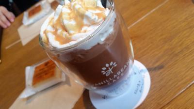 昼食を済ませたあとに、カフェ利用で来店。この日は、キャラメルミルクショコラッテを注文。650~800円くらいでドリンクを注文できる。店内は、商品を扱うショップスペースとカフェスペースとに分かれている。カフェの利用は、女性1人での利用やカップルでの利用が多いらしく、わりと男性も多く見受けられた。
