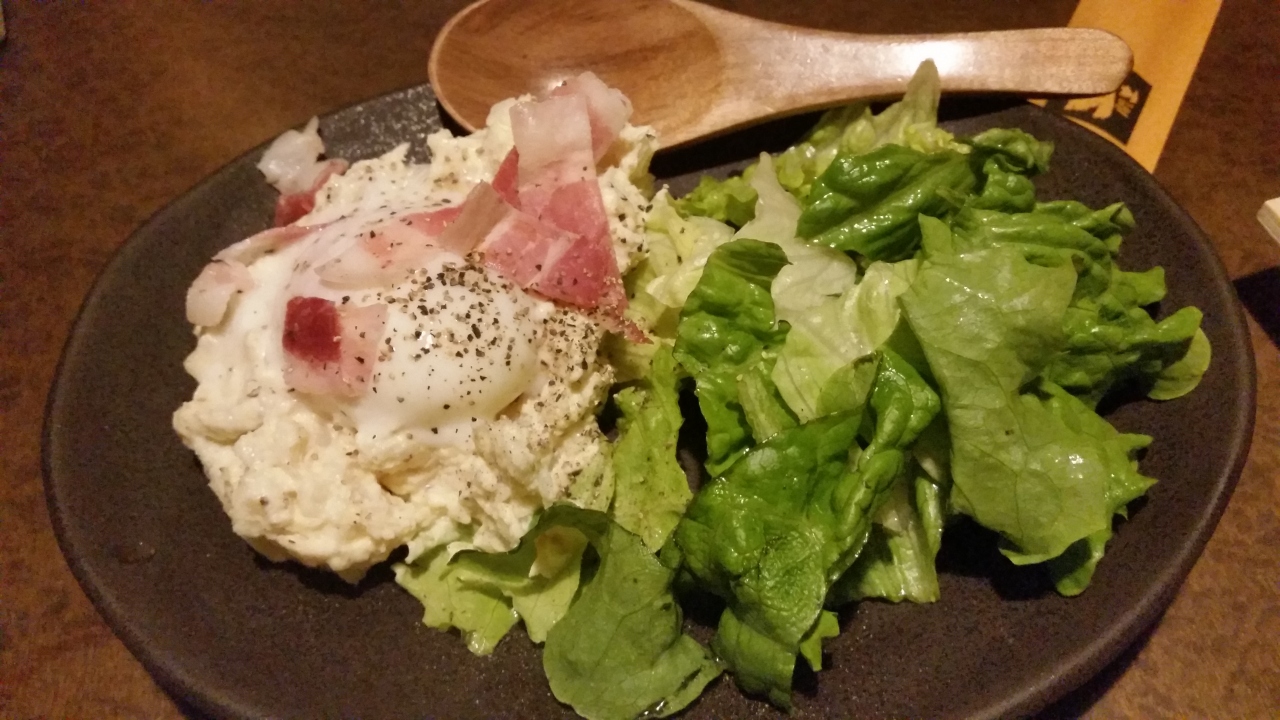 幕張メッセでの用事を済ませ来店。土間土間はよく利用するが、どこの店舗も安定したサービスを受けられる。ポテトが細いタイプで量も多いのでお気に入り。この日は、ポテトサラダに温玉がのっているサラダを注文してみたが、そちらも美味しかった。