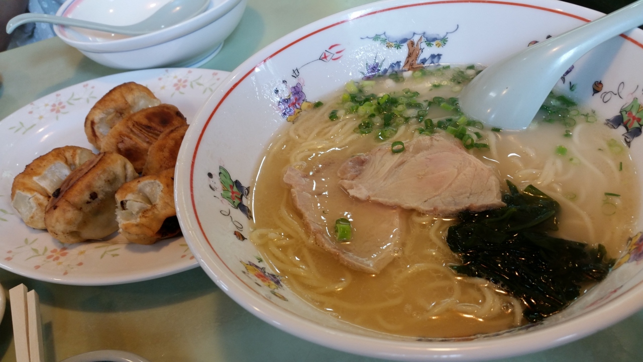 外観はかなり古く、内観も昭和の食堂風。ホワイト餃子が有名ということでそれを目当てに訪れた。餃子は8個で400円。皮が分厚く食べごたえがあるため、途中でテイクアウト用に詰めてもらっている人を何人か見かけた。2人で1皿がちょうどよいかと思う。ラーメンはもしもしラーメンという500円のメニューを選択。チャーシュー・わかめが具材で入っており、味はかなり懐かしい気分を味わうことのできるとんこつ味。ラーメンというよりは餃子メインで食べに訪れたい。