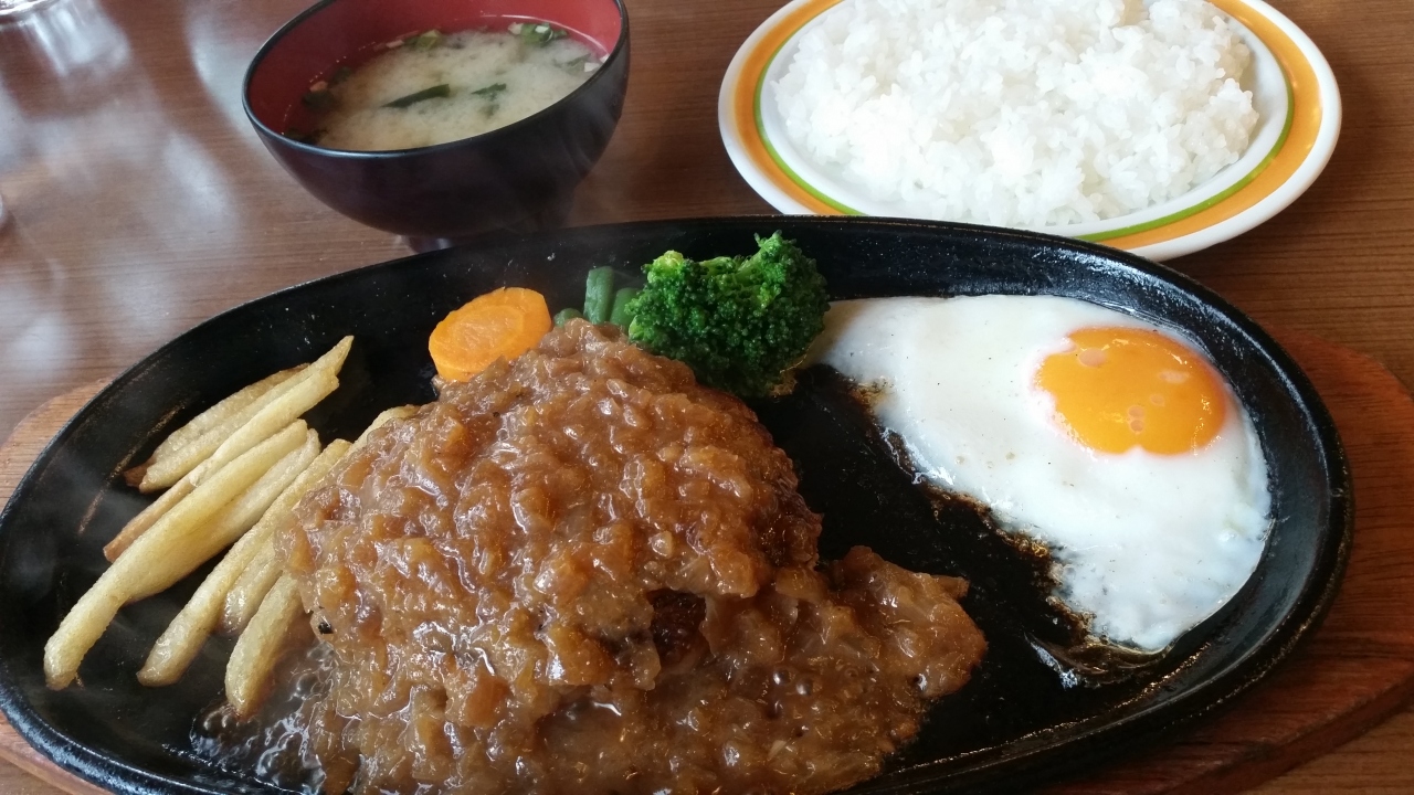 以前から気になっていたハンバーグ屋を来店。どうやら創業1954年でずいぶんと昔から人気があるお店だという事は知っていたが、訪れるのは初めて。開店の11時と同時に入店。席はファミレスのような雰囲気。12時に近づくと一気に満席となったので、できれば11時半までには来店した方がよいかも。ランチは、ハンバーグ+ライス+お味噌汁で800円とリーズナブル。ハンバーグのソースは、デミ風と和風の2種から選択することができる。ハンバーグの大きさも満足なサイズだった。