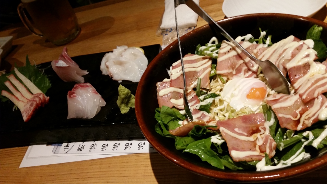横浜駅から徒歩3分ほどの建物の2階にある店舗。メニューは一定期間で少しずつ変わる。18時までの入店で、飲み放題(生ビールあり)で1人1200円の2時間制だった。特別おしゃれなわけではないが、安定感のあるお店だと思う。