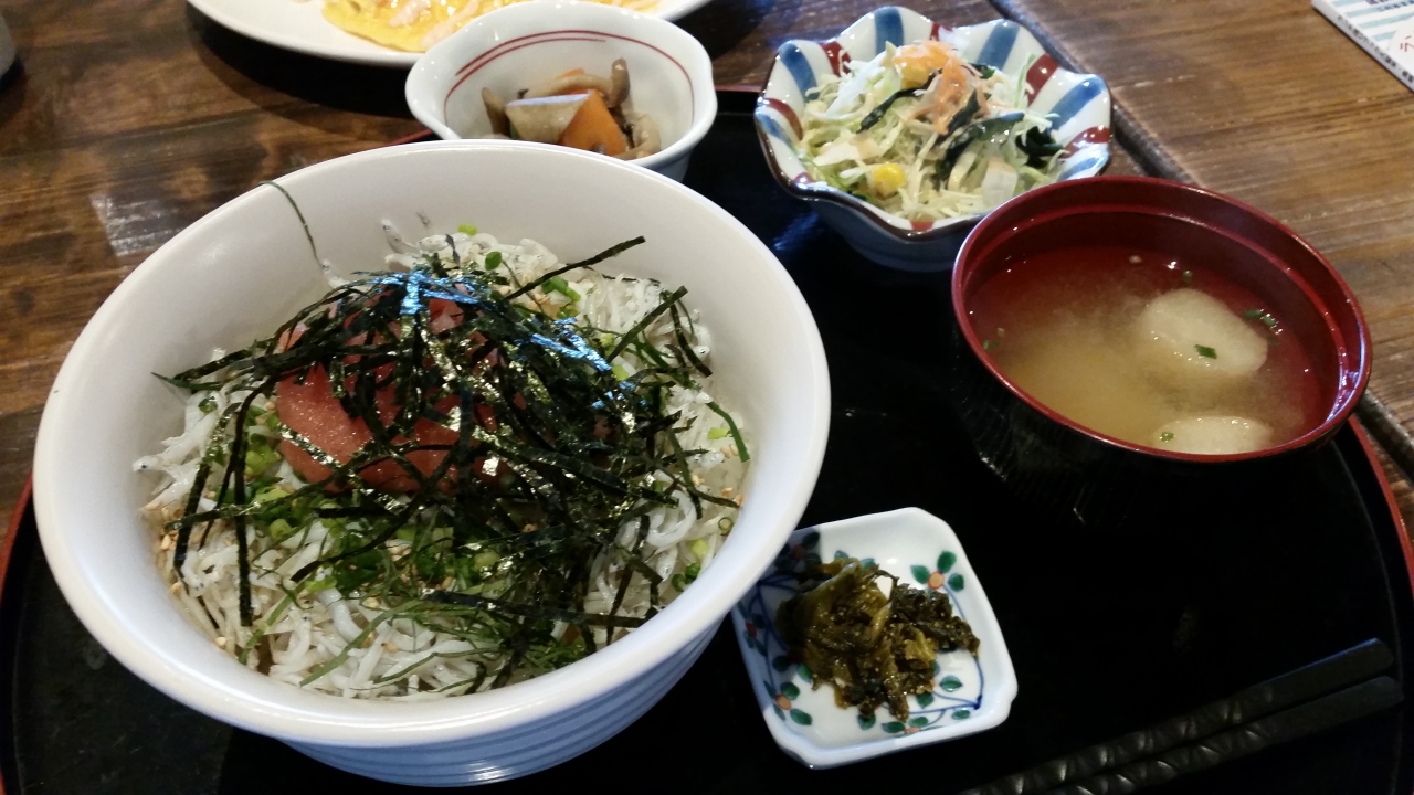 開店の11時半と同時に入店。1階が明太子等の商品を取り扱っている売店になっており、2階がカフェになっている。女性客が圧倒的に多い。今回は、めんたいしらす丼を注文。メニュー表で写真を見たときは、そこまでご飯が多くなさそうだなーと思ったものの、実際に料理が運ばれてくると、案外ご飯がたっぷり入っていてボリュームがあった。どんぶりの他に、サラダ、鉢(煮物)、めんたい高菜、お味噌汁もついていて1000円足らず。他のメニューも安くてわりとボリュームがあるみたいだった。オムライスもある。