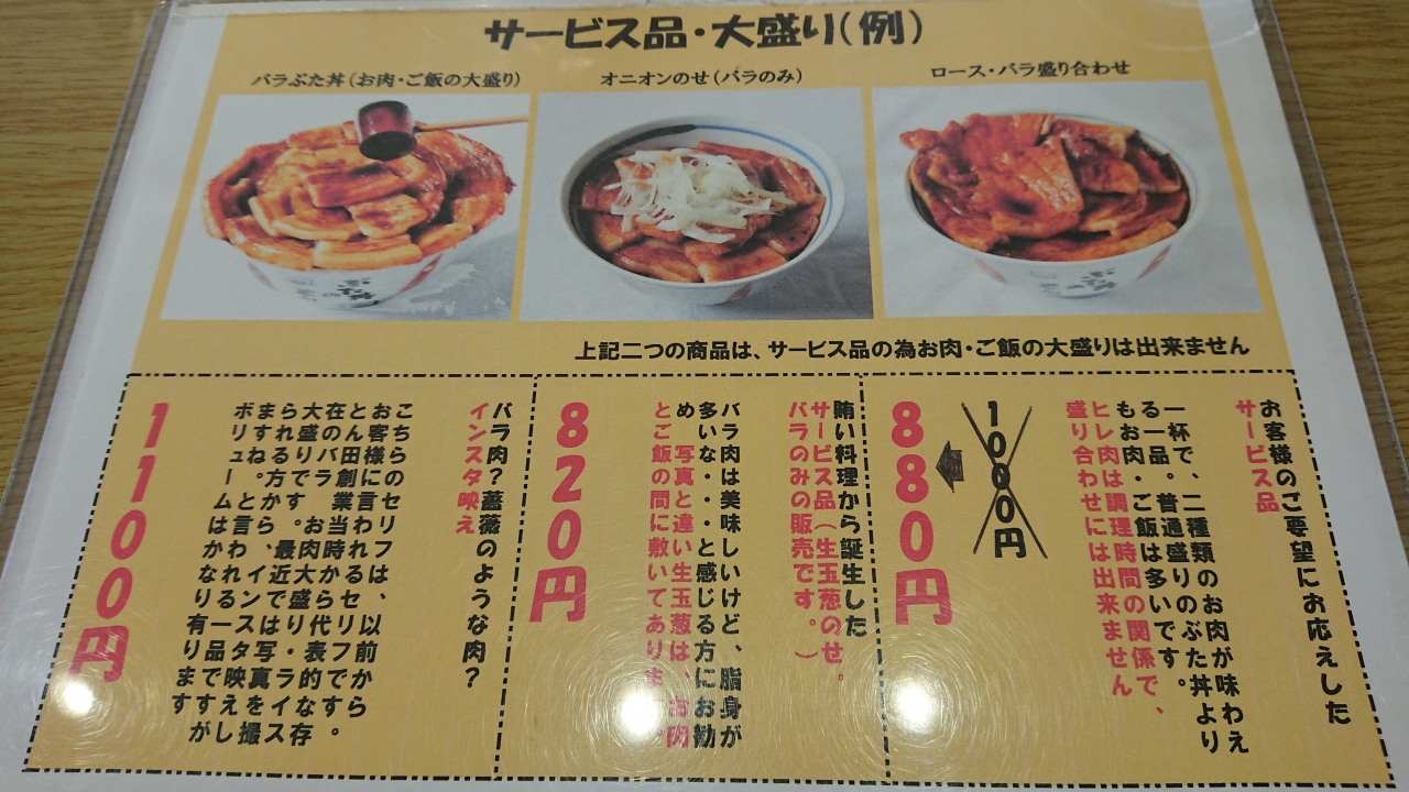 帯広に行くなら「ぶた丼」が食べたいということで、るるぶに掲載されていたこちらのお店にレンタカーで立ち寄った。駐車場に着くと、係の方が「満車ですので、お連れ様は先に車を降りて並んでいた方が良いですよ。」と親切に案内してくれた。席待ちの客は常に20名ほどは並んでいた感じ。(でも、長居をする人が少ないからか、わりと列の進みは早く、待ちくたびれたという感覚はなかった。)店員さんも慣れた感じで、嫌みもなく、気持ちよく過ごすことが出来た。男性客が多いのかと思いきや、女性同士の客もわりといて、店員さんも女性が多いし店内もキレイなので、女性のみでも来店しやすいお店だと感じた。この日は、ロース・バラ盛り合わせ(味噌汁、漬物付き)880円を注文。一杯で2種のお肉が味わえるのが嬉しい。ロースは山椒を、バラはにんにく一味をかけて食べるのがおすすめとのこと。最初は何もかけずにパクリ。お肉が柔らかいし、たれの味も美味しい!!!その後、山椒や一味をかけて食べてみるとまた違った味を楽しむことができて最高!隣の席の男性グループが、「肉とご飯の大盛を食べるために、今朝はご飯少なめにして備えてきた。」と話していて、その気持ちに激しく共感した。もしもう一度行くならば、ぜひ大盛メニューを頼みたいと思える一品。コスパ最高である。
