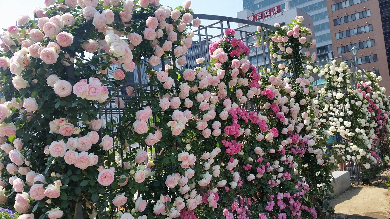 大阪淀屋橋駅より歩いてすぐのところにある中之島バラ園。この日は一人で時間をつぶさないといけない時間帯があったので、どこか無料で気軽に楽しめるスポットはないかと探していたところ、今バラが見頃であるこちらがヒットしたので行ってみることに。公園は川沿いにあり、ひたすらまっすぐ歩いて、また見終わったら駅の方へと折り返すといった感じ。ジョギングや犬の散歩で訪れている地元の方も多く見受けられた。何種類なのかは分からないが、赤や白、ピンクといった多くの種類のバラが植えられていて、とても綺麗だった。屋根はないので暑かったものの、川沿いにはカフェもあるし、こちらに寄ったあとに近くのカフェでゆっくり休憩しても良いかも。