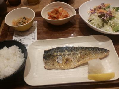 夜行バスに乗る前に夕食を…という事で、東京駅八重洲南口から近い場所で食事ができるお店を探していたところ、駅からバスの駐車場へ向かう途中にあるグラントウキョウサウスタワーの地下にレストラン街がある事を発見。その日はお腹に優しそうなものが食べたかったので、焼き魚の定食等があるこちらのお店に寄る事に。まず、店内に入るもお客さんはいるが店員の姿は一切なし。店の中央にある厨房らしきところを覗くと、そこに店員が3人いてぺちゃくちゃ話し込んでいた。おいおいとは思ったものの、時間も限られていたのでそのままこのお店を利用する事に。この日頼んだのは、さば塩焼き定食(790円)+キムチ(150円)。お冷・お茶・ご飯・味噌汁はセルフ式。ご飯のお供のごま塩やたくわんも無料で用意してあった。ご飯・味噌汁はおかわり自由。わりと一人でも利用しやすい店ではあった。ただ、いかんせん店員が話しているのがずっと聞こえてくる。もてなしの心があるのか謎。店内に貼ってあるポスターには「スタッフ募集、時給1100円」の文字が。こんなにゆるい仕事内容で1時間に1100円も貰っているとは、東京はいいですね、と思わず嫌味を言いたくなるような感じだった。料理自体の味は悪くないし、提供時間も早いのに色々ともったいないと感じた。改善するべき。