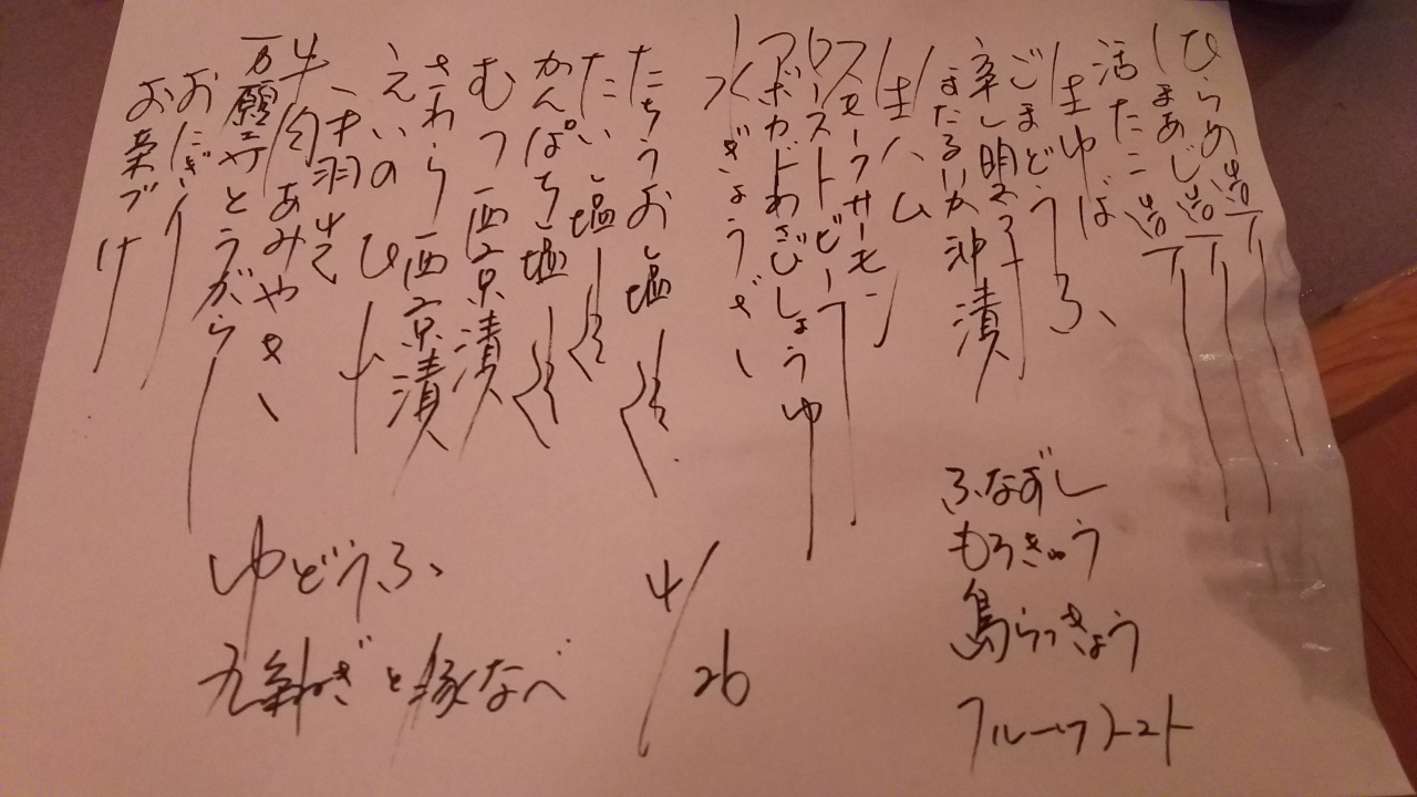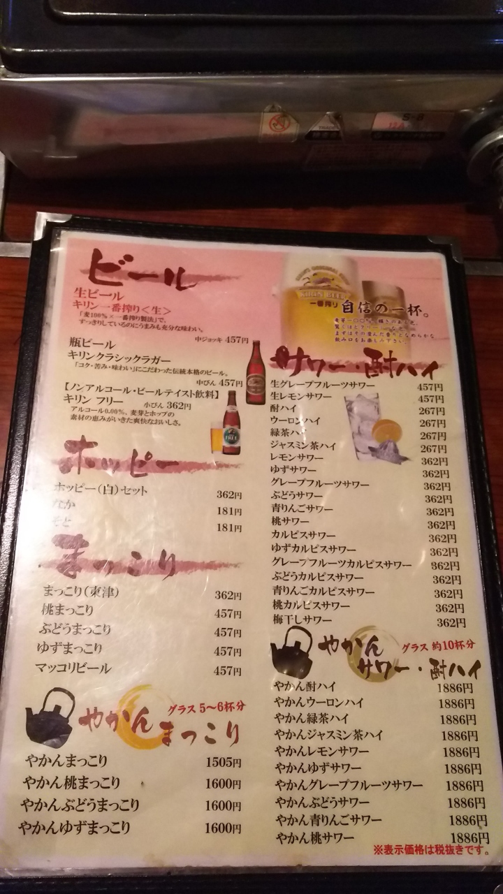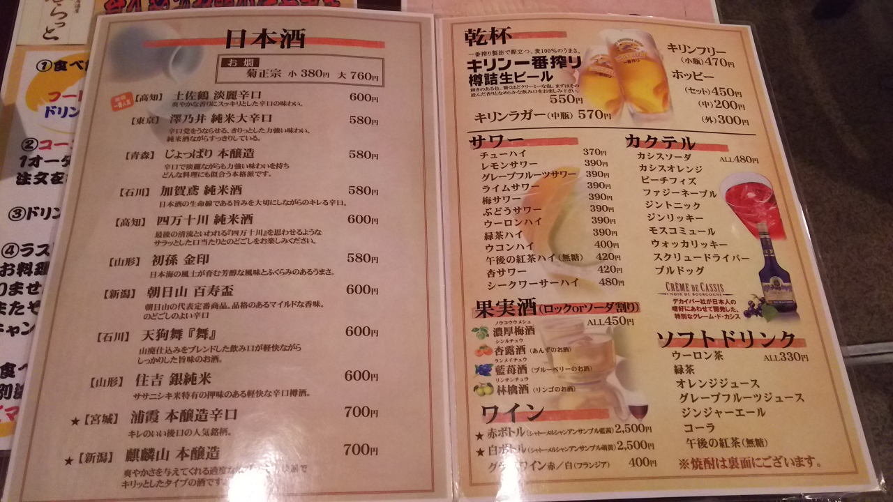食べ放題のメニューはさほど多くありませんが一通り好きな居酒屋料理を食べれますから満足度はまずまず まあ2時間3,600円でそこそこ食べて そこそこ飲めれば良いと思います。
