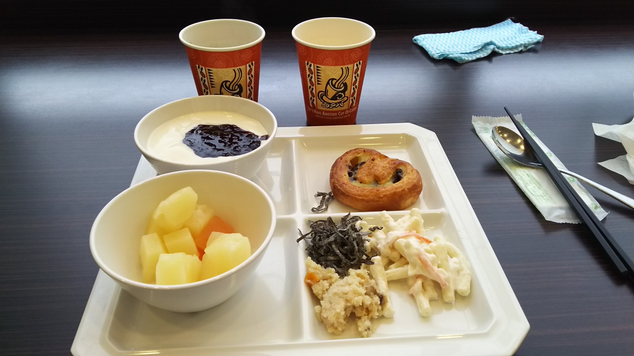 朝食はありきたりではあるがまあ食べられる。多少朝食会場が狭いのがネックかな