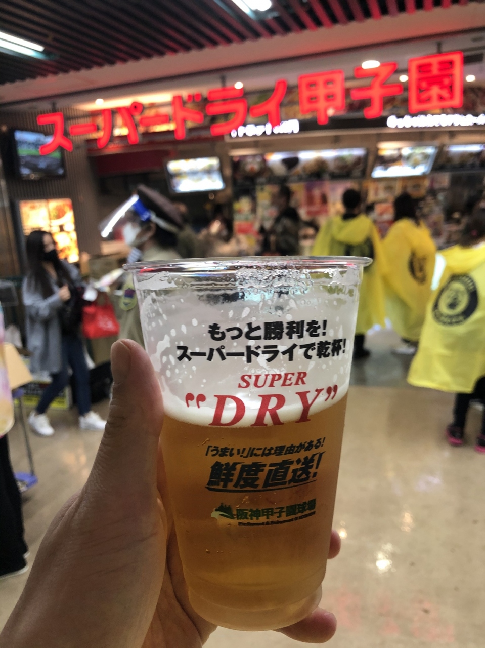 甲子園球場のライトスタンド入り口を入ってすぐのところにあります。普段は野球観戦を楽しむ人が席に行く前に食事や飲み物を買って行くところになります。行った試合は雨が降っており、入場後に中止になってしまいましたが、美味しいビールだけは楽しめました。