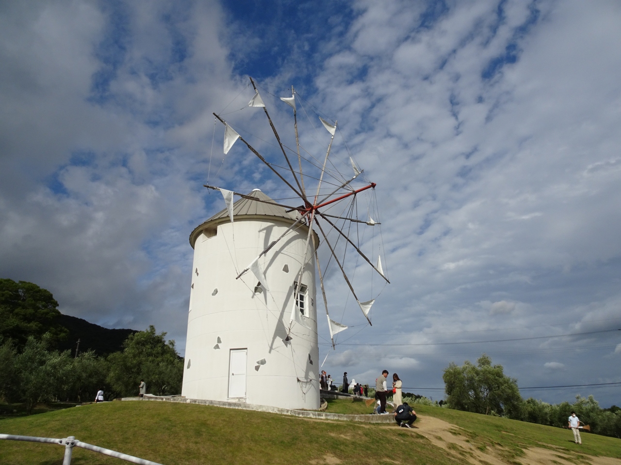 土庄と坂手の間にある道の駅です。エンジェルロードと並ぶ人気観光地です。園内にある風車が有名で、ここで魔女の宅急便のキキような写真を撮るのが流行っているようです。