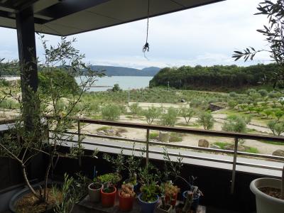 土庄から風車で有名な道の駅オリーブ公園に向かう途中にあります。少し高台にあるので見晴らしもよく、バルコニーからはオリーブ園の向こうに瀬戸内海が広がる景色が見れて非常に心地よいです。