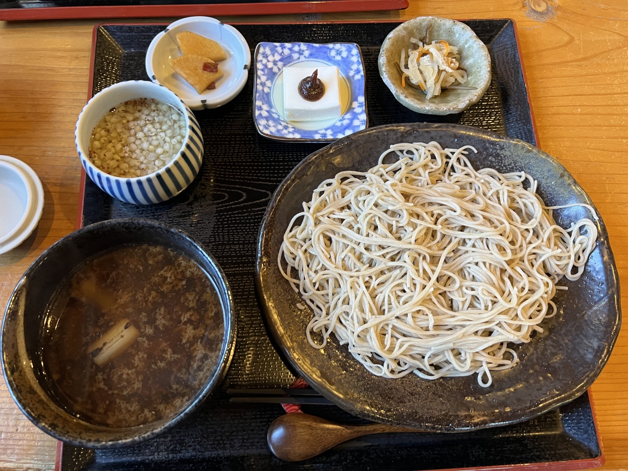小国そば街道の入り口付近の店。赤牛の蕎麦がおいしかったです。