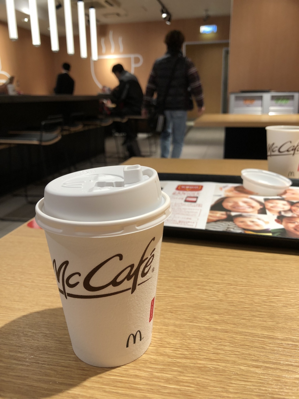 名古屋出張の際に、少しコーヒーを飲むために寄りました。マクドナルドはいつも席の取り合いになりますが、ここは大きなテーブルに多くの椅子を並べており、全てがカウンター席のようでした。そのために、どんなテーブルでも相席が当たり前。なるほど、この手があったかと思いました。