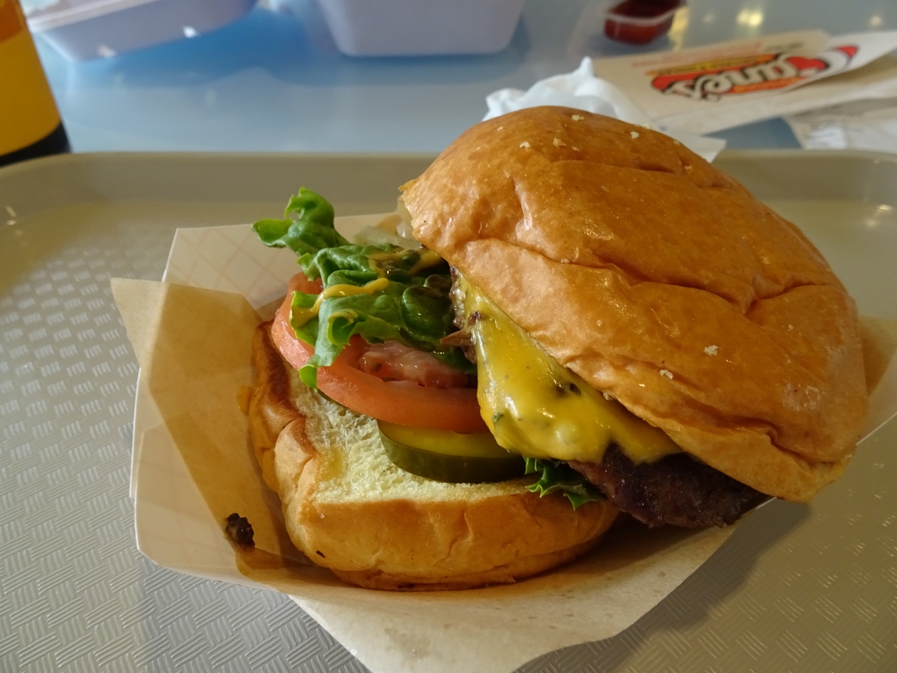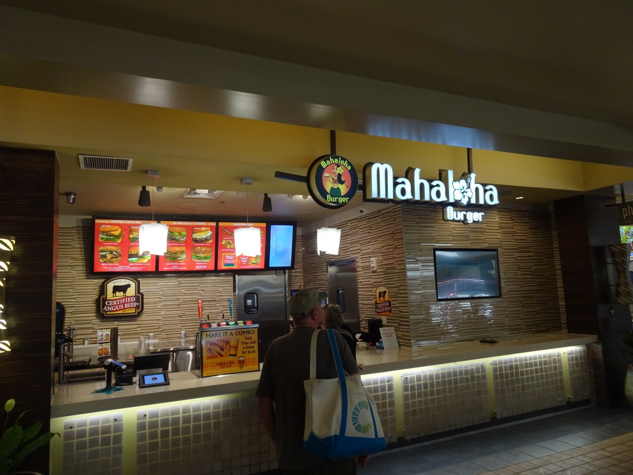 ロイヤルハワイアンのフードコートにあります。フードコートで食事をしようと向かっていたところ、たまたま見たこの店の広告が美味しそうだったので、ここにしました。チーズバーガーだったかと思いますが、肉もチーズも美味しく、本当にいいものを食べれたと思います。
