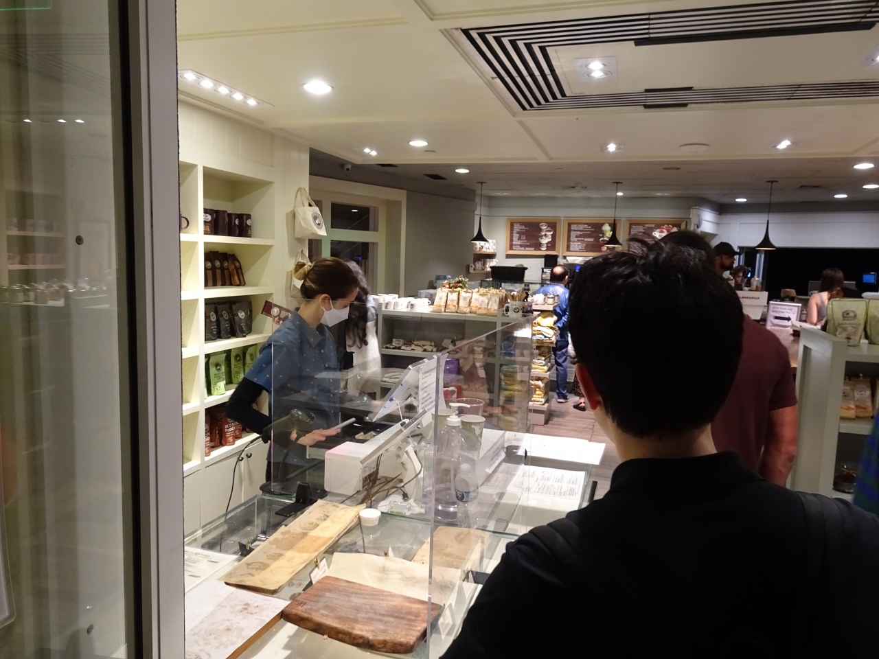 ハワイはコナコーヒーをはじめ、コーヒーを生産している地域です。このコーヒーショップは、ハワイに何店舗かあるチェーンのコーヒー屋さんで、とても美味しいコナコーヒーを提供してくれます。入った時は夜で、たまたま席が空いていましたが、混雑していて、レジにお客さんは途切れませんでした。