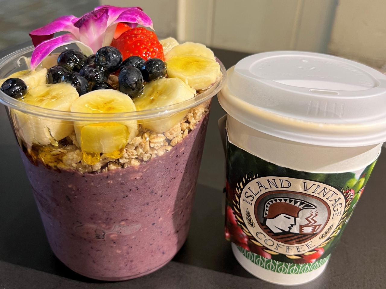 最終日に空港に行く前に寄りました。朝は8時から開いているので、迎えのバスが来る前に、アサイーボウルとコナコーヒーをいただきました。初日は昼に行ったらアサイーボウルが売り切れてましたが、朝一ならさすがに残っていました。いい締めくくりでした。