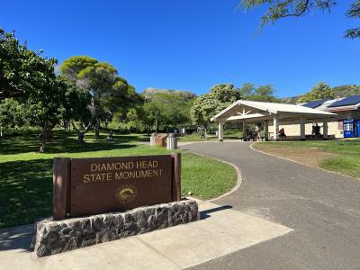 ワイキキから見えるダイヤモンドヘッドは、ハイキングで登ることができます。道も整備されていて、スニーカーで十分。ただし、2023年1月の時点では、事前に時間指定予約が必要です。この予約をチェックするのがビジターセンター。ここを拠点に登っていくことになります。