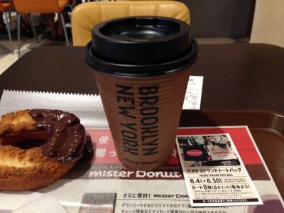 あの有名なミスタードーナツの店舗です。フードコート内にあるので、座る場所は他のお店と同じところです。ドーナツはメジャーなところは一通り置いてあります。