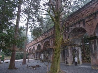 南禅寺には立派な建物や庭園もあるんですが、京都でも指折りの産業遺産があります。それが水路閣です。西洋風の煉瓦積みの橋があり、そこを琵琶湖の水が流れております。