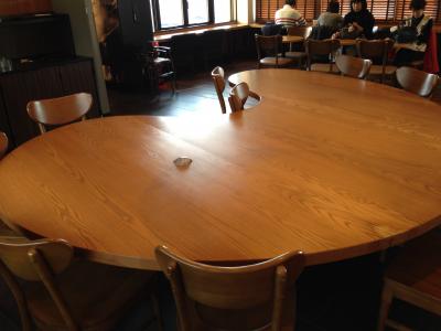2階が座席になっています。そこに大きなテーブルがありますが、なんと勾玉の形になっていました。外だけではなく、中も出雲らしいです。- 旅行時期