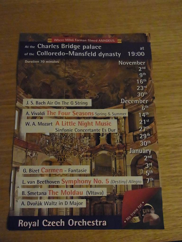 プラハでは、毎日、教会やホールなど、いろんなところでコンサートが開催されています。