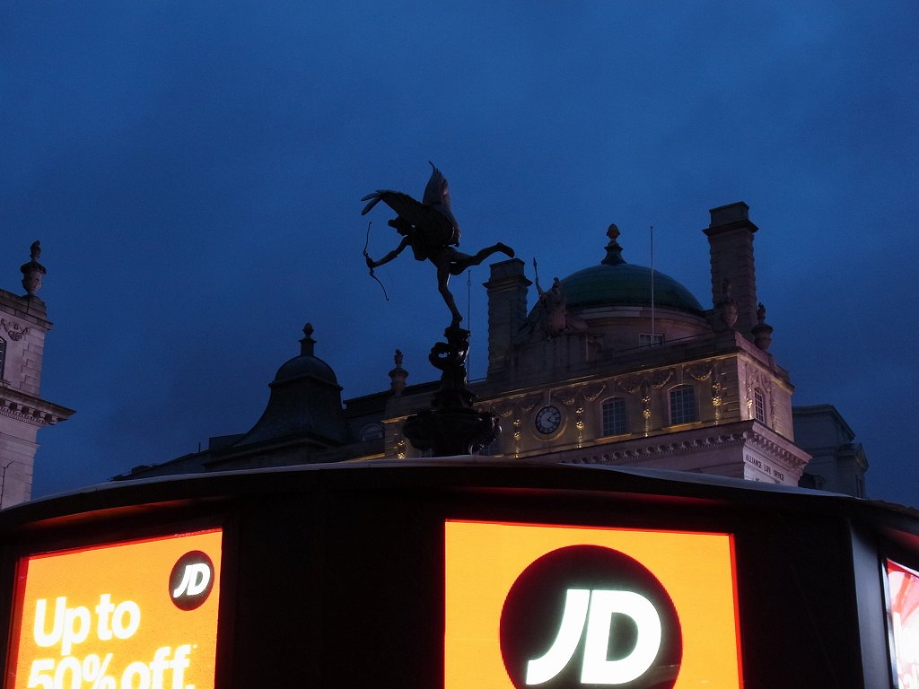 ピカデリーサーカスの一角にあるオブジェです。ガイドブックでは、階段状の台の上に像がたっておりましたが、私が行ったときは、周囲をネオンサインで囲まれており、上の部分の像しか見えない状態でした。