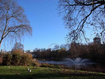 ホース・ガーズの交代式を見た後、バッキンガム宮殿での交代式を終えた歩兵を見に移動しましたが、その時にこの公園を横切りました。